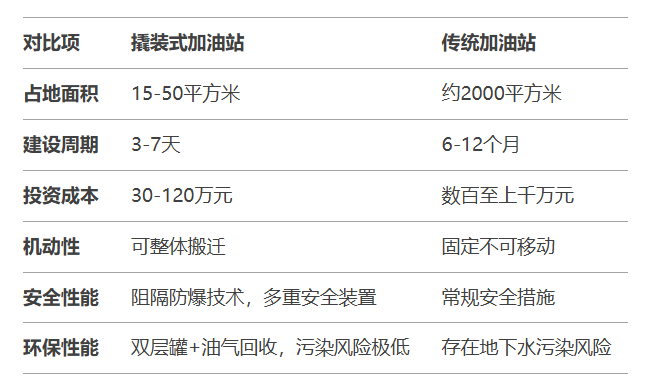 撬裝式加油站與傳統(tǒng)加油站的對比